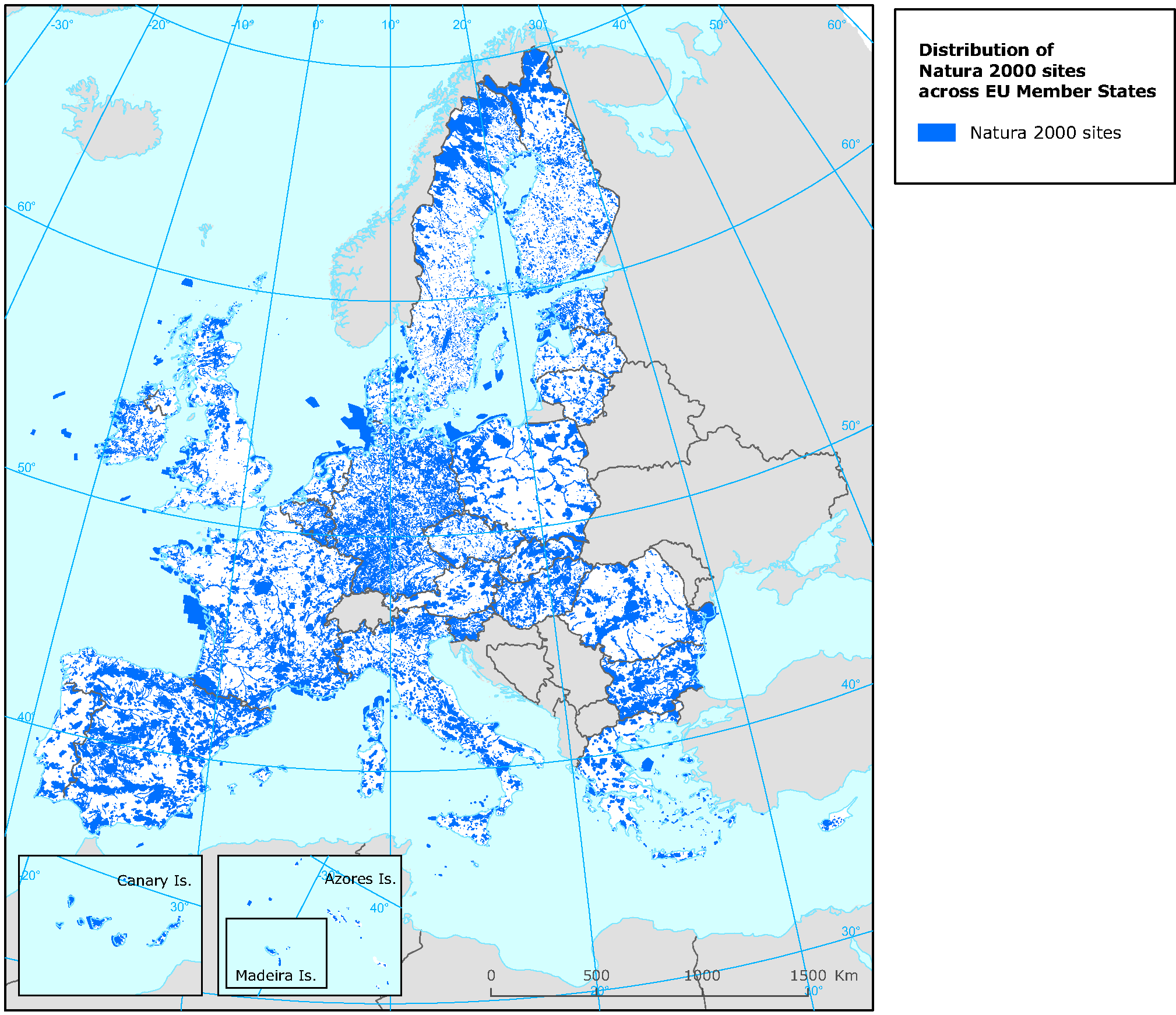 Au sein de l’Union Européenne, plus de 5 500 sites Natura 2000 ont été classés Zones de Protection Spéciale pour les oiseaux (ZPS) et plus de 23 700 sites ont été proposés au titre de la directive « Habitats Faune Flore » pour devenir des zones spéciales de conservation (ZSC), soit 18,15 % du territoire européen.