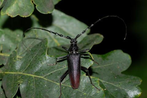 Le Grand Capricorne est l’une des plus grandes espèces de coléoptère de France. De forme allongée, il mesure 24-53 mm ; est de couleur brun-noir avec des antennes et des pattes noires. Les antennes du mâle sont deux fois plus longues que le corps, celles de la femelle sont aussi longues que le corps.